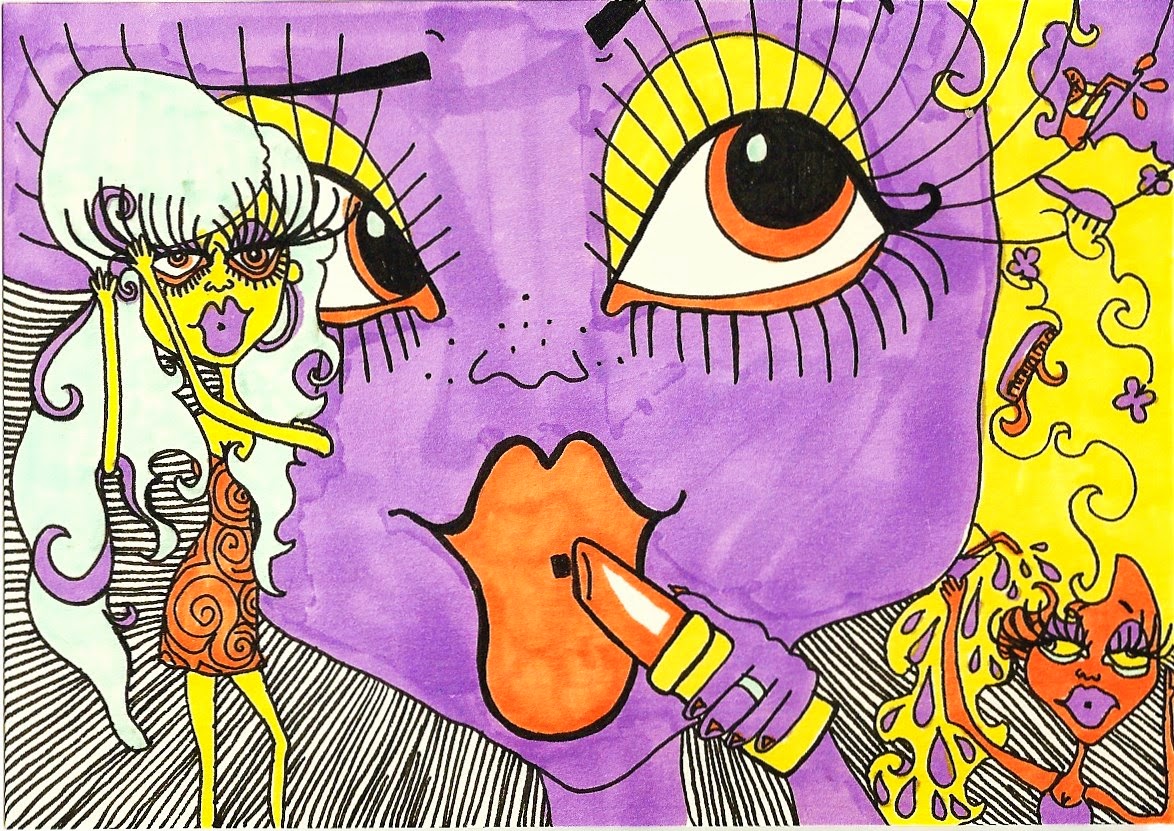 I've now tried to use my imagination to convey the feeling of drunkness and its effects on balance, blurring of sight etc. Below are some of my drawings using promarkers and a black fine liner on card. I did these without any reference material however if I were to follow these through with a final piece I would definitely use some reference material for elements such as hands/accessories/clothing and drinks. I used black fine liner to draw clear outlines and details and then I used pro-markers to colour the piece in a block colour. I chose to use pro markers as they don't show up the pen strokes very clearly; I wanted to have one strong block of colour rather than distracting lines. I used key elements I think are crucial with how some people, mostly girls, want to head out looking like; massive fake eyelashes, long legs, massive heels, voluptuous hair, big lips, glamorous earrings (debatable), skinny and big boobs.